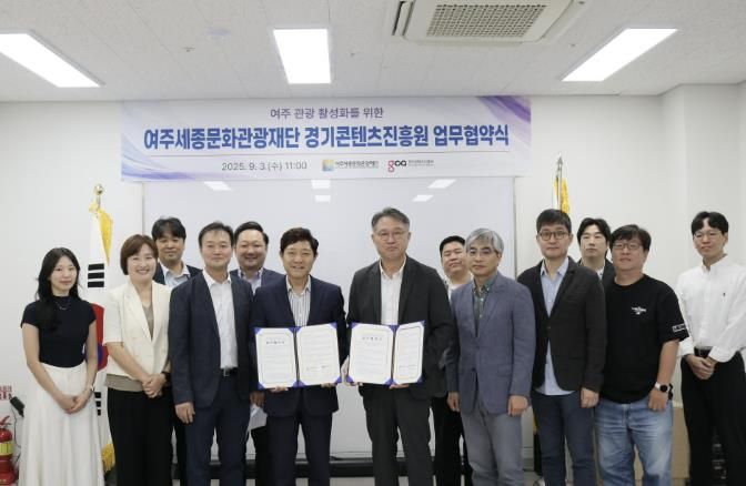 (뉴스폼) 여주세종문화관광재단은 9월 3일 경기콘텐츠진흥원과 여주시 관광 활성화를 위한 업무협약(MOU)을 체결했다고 밝혔다.