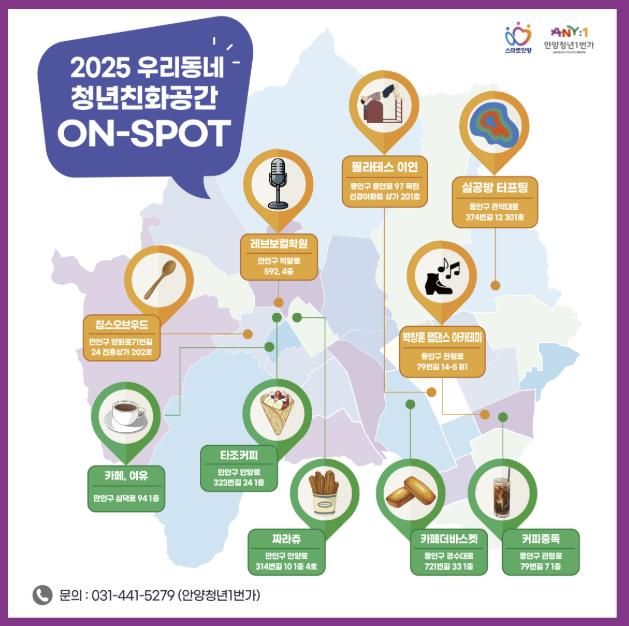 (뉴스폼) 안양시는 청년들이 가까운 카페나 연습실 등을 사용할 수 있도록 지원하는 생활밀착형 청년공간 지원사업 ‘온스팟(ON:SPOT) 프로젝트’를 처음으로 시행한다고 5일 밝혔다.