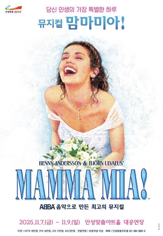 (뉴스폼) 안성맞춤아트홀은 오는 11월 7일부터 9일까지 대공연장에서 세계적인 히트 뮤지컬 '맘마미아!'를 무대에 올린다. 세대를 초월한 명곡과 유쾌한 스토리로 사랑받아온 이번 작품은 남녀노소 누구나 즐길 수 있는 최고의 힐링 뮤지컬이다.