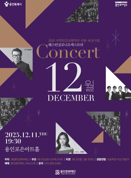 (뉴스폼) 용인문화재단은 오는 12월 11일 오후 7시 30분, 용인포은아트홀에서 웨스턴심포니오케스트라 '콘서트 ‘12월’' 공연을 개최한다.