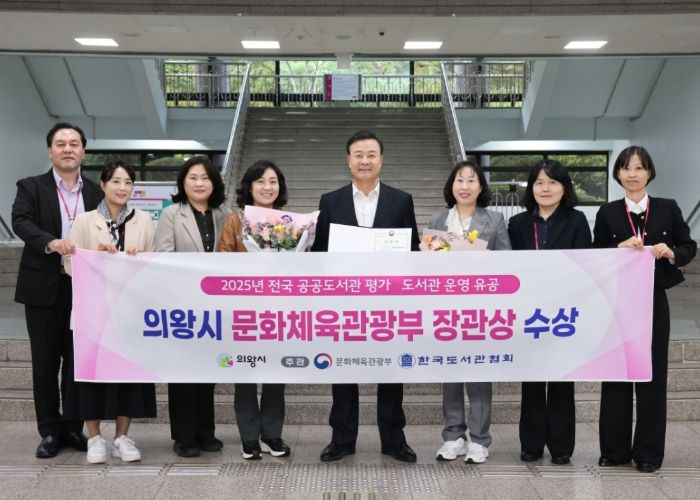 (뉴스폼) 의왕시 중앙도서관이 문화체육관광부가 실시한 '2025년 전국 공공도서관 운영 평가'에서 우수기관으로 선정, ‘도서관 운영 유공’ 부문 문화체육관광부 장관상을 수상했다.