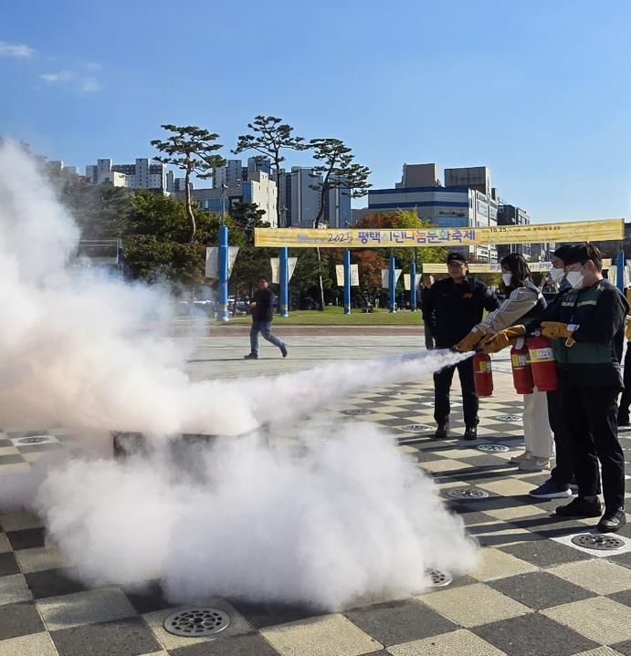 이날 훈련에는 평택시청 상주 직원과 비전119안전센터 소방대원 등 200여 명이 참여했으며, ▲신속한 화재 통보 ▲청사 내 대피 유도 ▲소화전을 이용한 초기 화재 진화 ▲소방차 진출입로 확보 및 차량 통제 ▲모의화재 소화기 진압훈련 등 실제 상황을 가정한 프로그램으로 구성됐다.