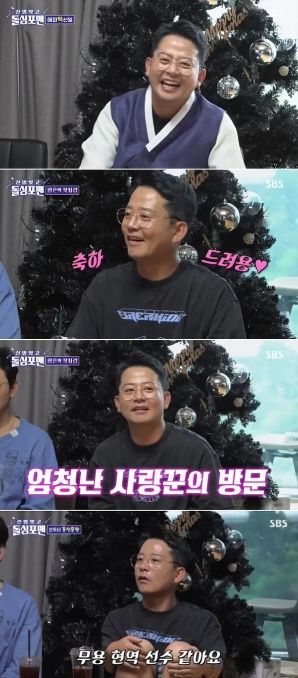 또한 그는 탁재훈에게 명품 쇼핑백에 담긴 선물까지 건네 모두를 놀라게 했다. 하지만 그 안에 들어있는 건 다름 아닌 배춧잎 담요로 보는 이들의 폭소를 유발했다.