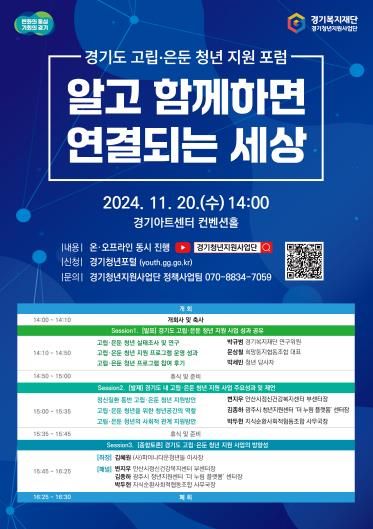 이인용 경기도 청년기회과장은 “고립·은둔 문제는 개인의 문제가 아니다. 우리 사회가 함께 고민하고 해결 방안을 찾아야 한다”면서 “이번 포럼에 논의된 내용을 발전시켜 고립·은둔 청년들의 일상 회복과 자립을 위해 세심히 지원해 나가겠다”고 말했다.