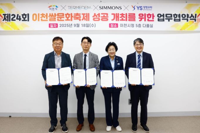 (뉴스폼) 이천쌀문화축제추진위원회는 9월 18일 테르메덴, 시몬스, YS생명과학과 업무협약을 체결했다고 밝혔다.