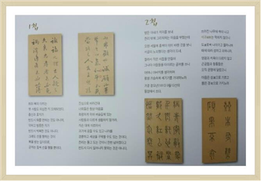 정조가 쓴 하피첩 4첩 중 2첩의 내용이다. 다산이 강진의 다사초당 유배 중 두 아들에게 보낸 편지다. 대대로 물려 내려오다가 을축 대홍수 수몰상황에서 종손이 지켜내고, 6·25 전쟁 중 분실됐다가 2005년 수원에서 폐지를 모으는 손수레 위에서 사라지기 하루 전에 발견됐다. 다음날 폐휴지 더미에 던져 길 절체절명의 위기에서 구해냈다.