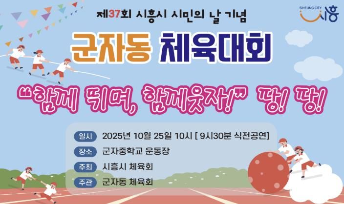 (뉴스폼) 시흥시 군자동 체육회는 제37주년 시민의 날을 맞아 오는 25일 군자중학교 운동장에서 ‘함께 뛰며, 함께 웃자’ 체육대회를 개최한다.