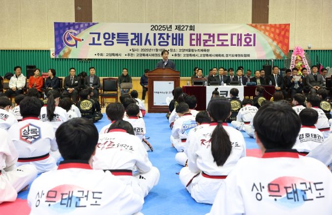 (뉴스폼) 2025년 제27회 고양특례시장기 태권도대회가 16일 고양어울림누리 체육관에서 개최됐다. 이동환 고양특례시장은 “갈고닦은 실력과 기량을 유감없이 발휘해 후회 없는 경기를 펼쳐주길”이라고 말했다.