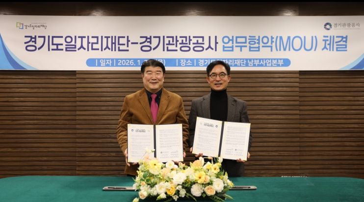 (뉴스폼) 경기도일자리재단과 경기관광공사는 22일 경기도일자리재단 남부사업본부에서 ‘경기북부 관광 활성화 및 유연근무 확산을 위한 업무협약(MOU)’을 체결했다.