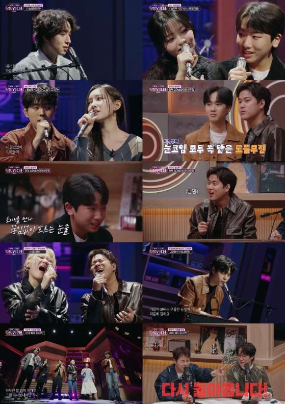 이어진 코너에서는 ‘남녀 듀엣’의 맞대결이 펼쳐졌다. 무무팀에서는 재소환 요청이 쇄도했던 임지성×송지우의 하울&제이의 ‘사랑인가요’를 선곡했다. 두 사람은 한층 자연스러워진 눈빛 교환과 풋풋한 감성으로 무대를 채웠고, 이를 지켜보던 출연진들은 “꿀 떨어진다”라며 들뜬 반응을 보여 웃음을 자아냈다.