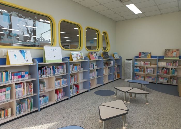 특히 어린이자료실은 입구 단차를 제거해 보행 안전성을 높였고, 벽면 도색과 전동 블라인드 교체, 유리 필름 시공 등으로 자료실 환경을 개선했다.
