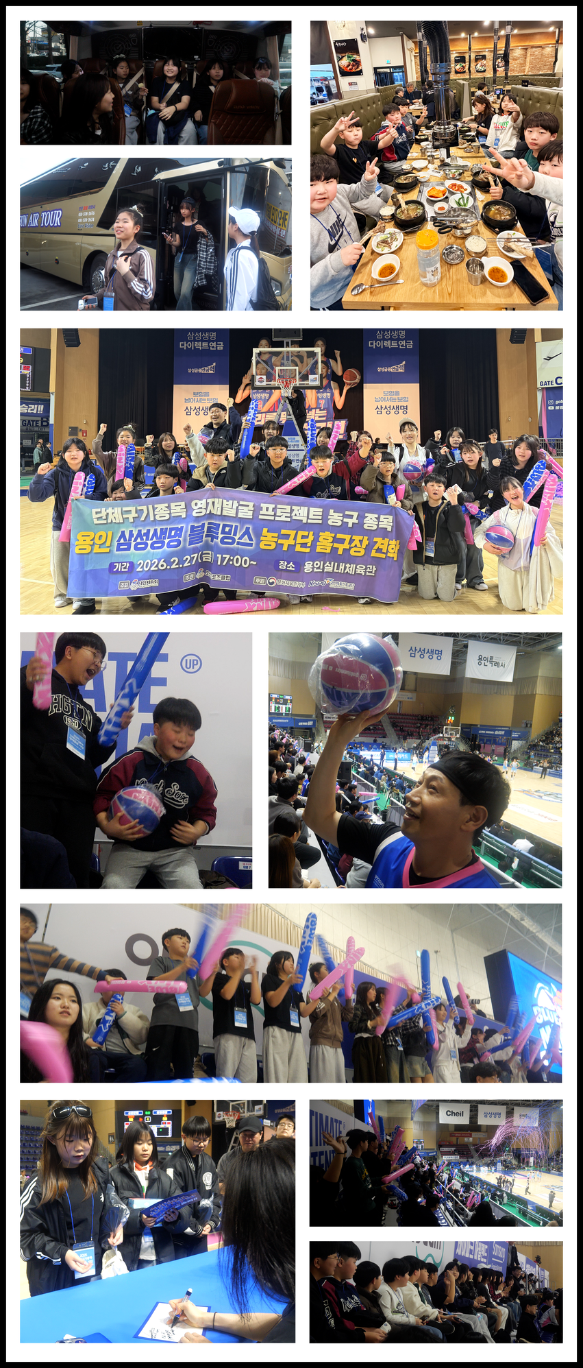 지난 2월 27일 ‘단체구기종목 영재발굴 프로젝트’를 통해 선발된 심화반 초등학생 19명이 용인 삼성생명 블루밍스 농구단 홈경기 견학을 다녀왔다.