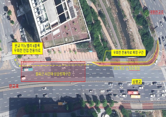 성남시 관계자는 “민선8기 공약사업이었던 판교 이노밸리 6블록 교통체계 개선을 위한 삼평교 우회전차로 확장으로 출퇴근 시간에 심했던 교통체증이 한결 해소될 것으로 기대한다”고 말했다.