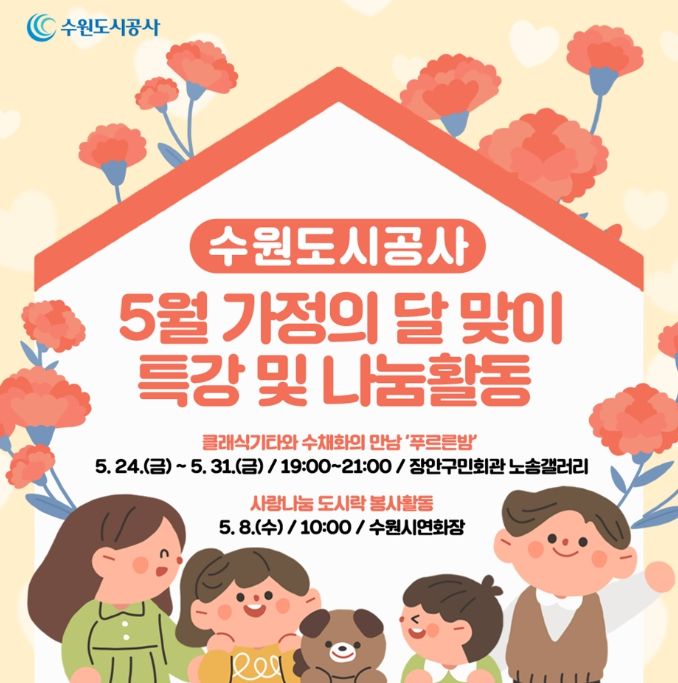 (뉴스폼) 수원도시공사(사장 허정문)는 5월 가정의 달을 맞아 가족과 함께 즐길 수 있는 문화 행사와 소외계층을 위한 나눔 활동을 마련했다고 30일 밝혔다.