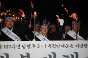 (뉴스폼) 남양주시는 27일 화도읍 월산교회에서 남양주문화원 주최로 열린 3.1독립만세운동 기념행사가 성황리에 마무리했다고 밝혔다. 이번 행사는 남양주 지역에서 전개된 독립만세운동의 역사적 의미를 되새기고, 지역 독립운동 정신을 계승하기 위해 마련됐다. 행사에는 주광덕 남양주시장을 비롯해 조성대 남양주시의장, 남양주문화원장, 경기북부보훈지청장, 광복회 남양주시지회장, 도·시의원, 독립유공자 후손과 시민 등 300여 명이 참석해 독립 정신을 되새겼다. 행사는 총 3부로 운영됐으며, 1부에서는 기념식과 기념예배가 진행됐다. 시립합창단의 식전공연을 시작으로 기념예배, 주광덕 시장의 경축사와 독립선언서 낭독 등이 이어졌다. 2부에서는 월산교회에서 마석역 광장까지 ‘횃불 대행진’을 진행했다. 풍물패와 군부대의 인도 아래 시민들이 직접 횃불을 들고 행진하며 1919년 당시의 긴박했던 만세 운동 현장을 재현했다. 마지막으로 3부에서는 모든 참석자들이 마석역 광장에서 삼일절 노래 제창과 만세삼창을 외치며 행사의 대미를 장식했다. 주광덕 시장은 “3.1운동의 정신은 과거에 머물지 않고 오늘날 우리에게 옳은 길을 알려주는 역사의 나침반”이라며 “선조들이 갈등보다 연대를 선택했