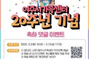 (뉴스폼) 여주시가족센터는 개소 20주년을 맞아 시민과 함께하는 연중 이벤트를 운영하며, 그 첫 번째 프로그램으로 ‘20주년 축하 댓글 이벤트’를 오는 3월 3일부터 3월 13일까지 진행한다. 이번 이벤트는 여주시가족센터 카카오톡 채널을 통해 참여할 수 있다. 센터 개소 20주년을 축하하는 메시지를 댓글로 남기면 추첨을 통해 소정의 선물을 제공하며, 여주시민이라면 누구나 참여 가능하다. 여주시가족센터는 이번 20주년 기념사업을 단발성 행사에 그치지 않고 시민이 직접 참여하는 연중 프로그램으로 운영할 계획이다. 이를 통해 지난 20년간 지역사회와 함께해 온 가족센터의 의미를 공유하고 다양한 가족이 일상 속에서 자연스럽게 기념사업에 참여할 수 있도록 할 예정이다. 올해는 ▲4월 ‘20’을 함께 축하하는 가족 사연 이벤트 ▲5월 센터 개소일과 생일이 같은 시민을 찾는 ‘6월26일 생일 친구 찾기’ ▲6월 20주년 축하 영상 공모전 ▲7월 '여주시 가족의 바람을 잇다' 설문조사 ▲9월 가족 추억 소환 공모전 등 시민 참여형 프로그램을 순차적으로 운영할 예정이다. 또한, 연중 이벤트를 통해 모인 시민의 이야