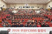 (뉴스폼) 부천FC1995가 22일 부천시청에서 2026시즌 출정식을 열고 창단 첫 K리그1 시즌을 앞둔 각오를 시민들과 함께 다졌다. 부천시는 오는 3월 1일 K리그1 개막전을 치르는 구단이 1부리그에서 당당히 경쟁할 수 있도록 지원하는 동시에, 경기 관람과 문화 체험, 소비가 이어지는 ‘스포츠 기반 지역경제 활성화’를 본격화할 계획이다. ◇ 팬·시민 열기로 가득했던 ‘K리그1 첫 시즌 출정식’ 성황 속 마무리 부천FC1995는 이번 출정식에서 사상 첫 K리그1 무대를 앞두고 구단주와 주요 내빈, 프로·유소년 선수단, 시민과 팬들이 한자리에 모인 가운데 출사표를 던졌다. 시청 로비에서는 한지호·백동규·바사니 등 주요 선수들의 팬 사인회와 스톱워치 이벤트, 포토존 등 장외 프로그램이 열려 현장 분위기를 달궜다. 본 행사에서는 김규민·성신·이충현 등 유망주를 꾸준히 배출해 온 유소년 선수단을 시작으로 프로 선수단과 스태프가 차례로 소개됐다. 부천시는 유소년부터 1군까지 이어지는 축구 생태계를 꾸준히 강조해 왔으며, 지난해에는 부천FC1995 U-18팀이 제47회 문화체육관광부장관배 전국고등학교 축구대회에서 우승을 차지하기도 했다. 이후 클린구단 선포식을 통해