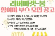 (뉴스폼) 포천시농업재단은 오는 5월 한탄강 생태경관단지에서 열리는 ‘2026년 포천 한탄강 리버마켓-봄’ 행사에 참여할 부스 운영자를 공개 모집한다. 이번 리버마켓은 2026년 5월 2일부터 6월 7일까지 37일간 한탄강 생태경관단지 일원에서 개최된다. ‘한탄강 가든페스타’와 연계해 포천 농특산물 홍보와 판매, 다양한 먹거리와 체험 프로그램이 함께 운영될 예정이다. 모집 규모는 총 45개 부스로 △포천 농특산물 판매대 20개 △먹거리 판매대 17개 △푸드트럭 8대다. 농특산물 판매대는 포천시 농업인 및 농식품 기업을 대상으로 모집하며, 먹거리 판매대와 푸드트럭은 식품 영업 허가가 가능한 개인 또는 단체가 참여할 수 있다. 행사 기간에는 농특산물 판매와 함께 △산나물 페스티벌 △시니어 패션쇼 △봄 반려견 관광축제 △홀스타인 품평회 등 다양한 연계 행사가 진행돼 방문객들에게 풍성한 볼거리와 즐길거리를 제공할 예정이다. 참여 신청은 3월 18일 오후 5시까지 전자메일 또는 방문 접수를 통해 가능하며, 선정 결과는 3월 26일 포천시농업재단 누리집을 통해 발표할 예정이다. 포천시농업재단 관계