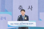 (뉴스폼) 화성특례시의회는 18일, 화성시 서신면 영정로안7길에 위치한 가축분뇨 공공처리시설 준공식에 참석해 환경과 농업, 시민의 삶을 지키는 새로운 출발을 함께 축하했다. 이날 준공식에는 배정수 의장을 비롯해 정흥범 부의장, 임채덕 경제환경위원장, 김상수·배현경·최은희 의원이 참석했고, 조합 관계자 및 지역 주민 등이 함께해 시설의 완공을 기념하고 지속 가능한 농업과 깨끗한 환경을 위한 비전을 다졌다. 배정수 의장은 축사를 통해 “오늘 준공된 가축분뇨 공공 처리시설은 환경과 농업, 그리고 시민의 삶을 함께 지켜내는 중요한 이정표가 될 것”이라며 “이 뜻깊은 결실을 맺기까지 힘써주신 조합 관계자와 지역 주민 여러분께 깊이 감사드린다”고 전했다. 배 의장은 이어“이번 시설 준공으로 가축분뇨의 체계적인 처리와 자원화가 가능해졌으며, 이는 악취 문제를 줄이고 바이오가스와 퇴비화를 통한 친환경 에너지 순환 체계를 구축하는 큰 성과”라며 “의회도 앞으로 농축산업과 환경이 조화를 이루는 지속 가능한 미래를 위해 적극적으로 지원하겠다”고 강조했다. 한편, 이번 준공식은 기념식과 축사, 현판 제막, 시설 둘러보기