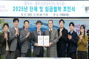 (뉴스폼) 광주시는 지난 30일 시청 이음홀에서 광주시청 공무직노동조합과 2025년도 단체 및 임금협약을 체결했다. 이번 협약은 공무직 근로자의 근로조건 개선과 복지 증진을 도모하고 노사 간 신뢰와 협력을 바탕으로 안정적인 근무 환경을 조성하기 위해 마련됐다. 협약에는 임금 인상을 비롯해 복지제도 강화, 노조활동 개선 방안 등이 포함됐으며 노사는 상호 존중과 협력을 기반으로 협약 사항을 성실히 이행해 나가기로 합의했다. 시는 이번 협약 체결을 통해 공무직 근로자의 근로의욕과 직무 만족도가 향상되고 이에 따라 행정서비스의 질 또한 높아질 것으로 기대하고 있다. 이와 관련 방세환 시장은 “노사가 상호 신뢰를 바탕으로 대화와 타협을 통해 이뤄낸 의미 있는 결과”라며 “앞으로도 시정을 함께 이끌어가는 동반자로서 지속적인 소통을 통해 상생하는 노사관계를 만들어 가겠다”고 말했다.