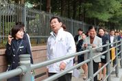 (뉴스폼) 이상일 용인특례시장은 2일 오전 수지구 죽전로 대청초등학교 사거리 횡단보도에서 등교시간에 맞춰 진행된 어린이 교통지도 봉사에 참여하고 학교 주변통학로를 둘러보며 일부 시설 개선을 지시했다. 이 시장은 이날 원종태 대청초 교장, 학부모회·녹색어머니회 회원, 학생 등 30여 명이 함께해 교통사고 예방과 안전한 통학로 만들기 캠페인도 벌였다. 이 시장은 학부모들과 함께 통학로 주변을 둘러보며 시설을 점검하면서 ▲대청초 후문 좁은 인도에 풀이 우거져 보행을 방해하는 화단과 파손된 보도블록 정비 ▲인도와 차도의 경계가 없는 구간 볼라드 설치 ▲진흥더블파크 옆 가파른 경사와 급커브 구간 방지턱 추가 설치 ▲학교 주변 일부 보도블럭 교쳬 등을 지시했다. 이 시장은 학교 부근 사거리에서 교통 사고 방지와 보행 안전을 위한 교통지도 활동을 학부모들과 함께 하기도 했다. 이상일 시장은 “학생들이 안전하게 등교할 수 있도록 봉사해 주시는 녹색어머니회 회원님들과 학부모님들께 감사인사를 드린다”며 “시는 앞으로도 학교 주변의 통학 환경 개선읕 위한 노력을 계속 기울이겠다”고 말했다. 이 시장은 10