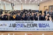 (뉴스폼) 시흥시는 지난 12월 10일 시흥노인종합복지관 소강당에서 대한노인회 시흥시지회 부설 ‘연꽃노인대학’ 졸업식을 열었다. 이날 졸업식에는 제11기 졸업생 39명과 김연규 대한노인회 시흥시지회 부회장과 김창철 학장, 이선미 시흥시노인복지관장 등이 참석해 그간의 배움을 축하하고 새로운 출발을 응원했다. ‘연꽃노인대학’은 노년층의 건강한 여가생활과 평생교육 실천을 위해 대한노인회 시흥시지회에서 운영하는 프로그램이다. 3월부터 12월까지 9개월간(방학 제외) 매주 1회 노래ㆍ댄스 수업과 연 1회 문화탐방 및 소양 강좌를 진행하며 어르신들의 자기 계발과 교류의 장을 확대해 왔다. 참여도 또한 높아 전체 수강생의 80% 이상이 수료 기준을 충족했다. 올해는 수강생 40명 중 39명이 졸업증서를 받았으며, 올해까지 총 11기에 걸쳐 440여 명의 졸업생을 배출했다. 이날 행사는 학사보고 동영상 시청에 이어 졸업증서 수여, 개근상 시상과 내빈 축사 순으로 이어졌다. 학사과정을 마친 졸업생들은 내빈의 축하 인사와 영예로운 학사모와 졸업장을 받으며 졸업의 기쁨을 만끽했다. 김연규 대한노인회 시흥시