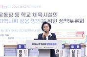 (뉴스폼) 경기도의회 정윤경 부의장(더불어민주당, 군포1)은 3월 16일 경기도의회 대회의실에서 열린 ‘운동장 등 학교 체육시설의 지역사회 활용 방안을 위한 정책토론회’에서 좌장을 맡아 학교 체육시설을 지역사회와 공유하는 다양한 방안을 논의했다. 이번 토론회는 도심 속 생활체육 공간 부족으로 인한 주민 불편을 해소하고, 학교를 지역 공동체의 거점 공간으로 활용하기 위한 협력 방안을 모색하기 위해 마련됐다. 토론회는 경기도의회와 경기도교육청이 공동으로 주최하는 ‘2026 경기도 정책토론회’의 일환으로 개최됐다. 토론회에는 김진경 경기도의회 의장, 임태희 경기도교육청 교육감, 김동연 경기도지사, 최종현 경기도의회 더불어민주당 대표의원이 축하 인사를 전하며 정책토론회 개최의 의미를 더했다. 이날 좌장을 맡은 정윤경 부의장은 “운동장 등 학교 체육시설은 지역사회의 중요한 생활체육 공간이자 공동체 소통의 거점”이라며 “학생의 안전과 교육 환경을 최우선으로 하면서도 학교의 부담은 최소화하고, 지역 주민들이 효율적으로 활용할 수 있는 합리적인 운영 방안을 마련하는 것이 필요하다”라고 토론회의 문을 열었다. 주제