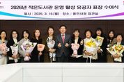 (뉴스폼) 용인특례시는 16일 시장 접견실에서 ‘2026년 작은도서관 운영 활성 유공자 표창 수여식’을 개최했다. 이날 표창은 지역 독서문화 확산과 작은도서관 운영과 발전에 기여한 개인과 단체의 노고를 격려하고자 마련됐다. 표창 대상은 2년 이상 작은도서관 운영과 발전에 기여한 자원봉사자 개인 9명과 단체 5팀 등이다. 이상일 시장은 “용인의 독서율은 54%로 전국 평균인 38.5%보다 높고, 수지도서관은 2년 연속 전국 대출 1위를 기록하고 있을 정도로 전국에서도 독서 열기가 으뜸”이라며 “작은도서관들이 모여 이 같은 시민의 독서 열기에 잘 부응해 주시고, 아동 틈새 돌봄 역할까지 해주시는 등 작은도서관의 활동이 시민 삶의 만족도를 높인다고 생각하며, 오늘 표창을 받으신 분들께 감사와 축하의 뜻을 전한다”고 말했다. 한편, 시는 올해 지역 내 작은도서관 152곳에 총 6억 5000만 원 규모의 지원 사업을 추진하고 있다. 작은도서관 운영 물품 구입비를 지원하는 운영지원사업, 무더위·혹한기 쉼터 운영 작은도서관 대상 냉·난방비와 기기 지원, 작은도서관 운영 자원봉사자 대상 실비 지원 등