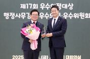 (뉴스폼) 경기도의회 건설교통위원회 허원 위원장(국민의힘, 이천2)은 26일 경기도의회 대회의실에서 열린 ‘2025년 경기도의회 시상식’에서 대한민국시도의회의장협의회가 수여하는 ‘제17회 우수의정대상’을 수상했다. 허원 위원장은 상임위원장으로서 도민 안전과 이동권을 핵심 가치로 삼아, 건설·교통 분야 주요 현안을 종합적으로 점검해왔다. 특히 정책의 실효성과 예산 집행의 책임성을 강화하는 데 중점을 두고 위원회 운영을 이끌어 왔다. 이를 바탕으로 위원회 심사 과정에서는 단순한 지적에 그치지 않고 관계기관과의 협의를 통해 대안 제시와 실행 점검을 병행하며, 정책이 실제 현장에서 작동하도록 사후관리와 성과 점검 체계를 강화하는 데 힘써 왔다. 아울러 사고 예방을 위한 시설 안전관리와 현장 점검, 행정사무감사를 통한 문제 진단과 후속 개선 요구, 예산안·결산 심사를 통한 비효율적 지출 정비와 재정 우선순위 재정립 등 위원회 운영 전반을 현장–제도–예산으로 연결하는 구조적 접근을 지속해 왔다. 이 같은 의정활동은 건설·교통 정책의 실효성을 높이고, 도민이 체감할 수 있는 안전과 이동 편의 개선으로 이어졌다는