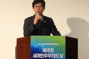 (뉴스폼) 경기도의회 국중범 의원(더불어민주당, 성남4)은 30일 경기아트센터 컨벤션홀(도움관)에서 열린 ‘제18회 세계민주주의의 날 기념식 및 2025 경기국제민주포럼’에 참석하여 민주주의의 의미를 되새기고, 민주주의 회복과 확산을 위한 연대의 뜻을 밝혔다. 이번 행사는 ‘다시, 민주주의’를 주제로 (사)성남민주화운동사업회가 주최·주관하고 경기도가 후원했으며, 염태영 국회의원, 황대호 경기도의회 문화체육관광위원장, 국중범 도의원, 이영봉 도의원 등 다수의 내외빈이 참석해 자리를 빛냈다. 특히 세계민주주의의 날을 기념하는 행사는 전국 지방정부 중 유일하게 경기도에서만 개최되고 있으며, 올해로 18회를 맞이했다. 국중범 의원은 이날 기념식 현장에서 민주주의의 가치와 의미를 함께 나누며, “오늘 제18회 세계민주주의의 날 기념식에 신장호 열사의 어머니께서 함께하셨습니다. 고(故) 신장호 열사는 고등학교 시절부터 저와 함께 전두환 군사독재 정권에 맞서 민주주의를 위해 싸운 동지이자 후배였습니다.”라고 전했다. 이어 국 의원은 “신장호 열사의 뜻을 이어받아 이 땅의 진정한 민주주의와 조국 통일을 위해 끝까
