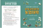 (뉴스폼) 양평군은 15일부터 관내 농업인 및 군민을 대상으로 ‘2026년 제27기 양평군 친환경농업대학’ 신규 교육생을 모집한다고 밝혔다. 27주년을 맞이하는 친환경농업대학은 지금까지 2,172명의 졸업생을 배출했으며, 양평군의 지속 가능한 농업을 이끌어 갈 인재를 양성하기 위한 평생 교육과정이다. 모집 인원은 △청년CEO과 20명 △귀촌커뮤니티과 40명 △귀농정착과 40명 등 총 100명이다. 지원 자격은 양평군에 주소를 둔 군민으로 지방세 미체납자에 한하며, 세대당 1명만 지원할 수 있다. 만 45세 이하 청년농업인은 우선 선발 대상이며, 친환경농업대학을 3회 이상 졸업한 자와 귀농귀촌농업과(전 신규농업과) 졸업자는 동일 과정 지원이 제한된다. 입학지원서 교부 및 접수 기간은 12월 15일부터 2026년 1월 13일까지 4주간이며, 합격자 발표는 2026년 2월 3일 개별 통보와 함께 농업기술센터 누리집을 통해 공지될 예정이다. 교육 등록 기간은 2026년 2월 3일부터 6일까지다. 2026년 교육과정은 △청년CEO과는 양평 농업을 이끌 청년농업인 양성 과정 △귀촌커뮤니티과는 농업·농촌 가치