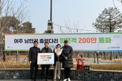 (뉴스폼) 여주 남한강 출렁다리가 12월 29일 누적 방문객 200만 명을 돌파하며 개통 첫해에 의미 있는 성과를 기록했다. 여주 남한강 출렁다리는 지난 5월 1일 개통 이후 45일 만에 100만 명, 이어 첫해 누적 200만 명을 돌파하며 여주 관광 활성화의 기틀을 마련했다. 특히 개통 효과에 따른 단발성 흥행에 그치지 않고, 연중 꾸준한 방문 흐름을 유지하며 지속 방문형 관광 콘텐츠로 자리매김했다는 점에서 남한강 출렁다리가 지역 관광의 핵심 거점이자 중심축으로 기능하고 있음을 입증했다. 이번 200만 번째 방문객에게는 여주쌀 20kg, 출렁다리 레고 등 출렁다리 굿즈가 기념 선물로 전달됐다. 행운의 주인공은 충북 음성에 거주하는 60대 박용관 씨로, 29일 일본 요코하마에서 거주 중인 누나 박정숙 씨와 매형 마쯔시다 데쯔오 씨와 함께 출렁다리를 찾았다. 박 씨는 “연말을 맞아 여주를 방문했는데 200만 번째 방문객이 되어 놀랍고 기쁘다”라며, “남한강 풍경이 인상적이었고, 다시 한번 찾고 싶은 관광지”라고 소감을 전했다. 이순열 여주세종문화관광재단 이사장은 “2025년 12월 29일, 개통 첫해에 200만