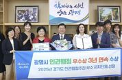 (뉴스폼) 광명시가 경기도가 선정하는 인권 행정추진 우수 기관으로 3년 연속 선정되며 인권 선도 도시로 확고히 자리매김했다. 시는 지난 9월 30일 경기도청 다산홀에서 열린 ‘2025년 경기인권포럼’에서 경기도 인권 행정추진 우수 자치단체 경기도지사 표창을 받았다. 경기도는 31개 시군을 대상으로 인권행정 제도와 정책 추진 성과를 종합 평가해 5개 우수 자치단체를 선정했으며, 광명시는 평가 제도가 도입된 2023년부터 올해까지 매년 수상하는 성과를 거뒀다. 이번 수상은 ▲인권행정 제도 구축(인권조례제정, 인권위원회 구성 및 운영, 인권교육 실시 등), ▲인권정책 수립(인권기본계획 수립 및 연도별 시행계획 수립, 인권실태조사 및 인권영향평가, 인권문화행사 등) ▲지역사회 인권증진 활동 ▲시민 인권 보장과 존중 문화 확산 등 전반적 성과를 전문가들로부터 인정받은 결과다. 광명시는 2012년 지방자치단체 최초로 ‘광명시민인권센터’를 개소하고, ‘인권보장 및 증진 5개년 기본계획’ 수립하는 등 인권 친화적 행정의 기틀을 마련해 왔다. 특히 인권기본계획에 재개발·재건축이 많은 도시 특성을 반영해