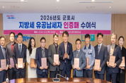 (뉴스폼) 군포시 하은호 시장은 3월 5일 지방세를 성실하게 납부하여 지방재정 확충에 기여한 유공납세자 15개 법인에게 ‘유공납세자 인증패’를 수여하고 감사의 마음을 전했다. 시는 지난달 성실납세자 기준을 충족하는 대상자 중 무작위 전산 추첨으로 35명을 선정했고, 지방세심의위원회 심의를 통해 유공납세자 15개 법인을 선정했다. 성실납세자는 [군포시 성실납세자 등 지원 조례]에 따라 최근 3년간 지방세 체납․결손․징수유예 등의 사실이 없고 최근 3년간 계속하여 3건 이상의 지방세를 납기내 납부하여야 하며, 유공납세자는 성실납세자로서 법인은 1천만원, 개인 및 단체는 5백만원 이상 납부하여 시 재정 확충에 기여한 자이다. 성실납세자에게 주어지는 혜택은 1년 동안 지역 내 공영주차장 2시간 이용요금 면제, 시 자체 기획공연 관람료 50% 할인, 시 금고인 NH농협은행의 예금 및 대출 우대금리 적용이 지원된다. 또한 군포시와 업무협약을 맺은 군포 지샘병원과 원광대 산본병원으로부터 기본 종합검진비 20% 할인과 입원 시 비급여대상 본인부담금 10% 할인 및 장례식장 이용료의 10%~20% 할인 혜택이 선정일로부터 2년