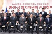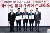 (뉴스폼) 경기도의회와 경기도교육청은 5일 ‘2025년도 제1차 여야정협치위원회 전체 회의’를 열고 내년도 본예산에 경기교육의 발전과 미래를 위한 협치예산을 공동 추진하기로 합의했다. 김진경(더민주·시흥3) 의장과 임태희 도교육감, 더불어민주당 최종현(수원7) 대표의원, 국민의힘 백현종(구리1) 대표의원, 김진수 제1부교육감 등은 이날 의회 예담채에서 첫 여야정협치위원회 전체 회의를 열었다. 도의회·도교육청 여야정협치위원회는 ▲현장 중심의 학교 운영 강화, ▲교육행정 접근 체계 개선, ▲미래 교육을 이끄는 학습 전환, ▲안전하고 효율적인 교육환경 조성, ▲지역협력 기반의 맞춤형 교육 확대 등 5대 분야 2,000억원 규모의 협치예산을 공동 추진하기로 합의했다. 양 기관은 여야정 협치의 정신 아래 학생이 행복하고 교사가 존중받으며, 지역이 함께 성장하는 경기미래교육을 위해 협치예산의 효율적인 집행과 함께 지속적인 협력을 이어가기로 했다. 김진경 의장은 “경기도 학생들을 위한 교육 현안만큼은 여와 야, 의회와 집행부가 따로 있을 수 없다”라며 “아이들의 더 나은 미래를 위해 책임을 함께 짊어지고, 결과