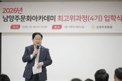 (뉴스폼) 남양주시는 4일 남양주문화원사에서 남양주문화원이 개최한 ‘남양주 문화아카데미 4기 입학식’에 참석해 1년 과정의 문화·예술·인문학교육의 출발을 함께했다고 5일 밝혔다. 문화아카데미는 시민에게 수준 높은 인문 교양 강좌와 지역 역사 교육을 제공하는 남양주문화원의 대표 교육사업이다. 지역의 문화 리더를 양성하는 산실로 자리 잡으며 시민 인문역량 강화에 기여해 왔다. 행사에는 주광덕 남양주시장을 비롯해 김경돈 남양주문화원장, 진익주 총원우회장, 4기 신입 원우 등 40여 명이 참석했다. 행사는 개식과 국민의례를 시작으로 내빈 소개, 입학식사와 축사, 격려사, 기념촬영 순으로 진행됐다. 이어 입학증서 수여와 오리엔테이션을 통해 향후 교육 일정과 운영 방향을 안내했다. 문화아카데미는 3월부터 12월까지 1·2학기 과정으로 나눠 운영한다. 정규강의 20강좌와 특강 2강좌, 문화유산 탐방 및 워크숍 2회 등으로 구성했다. 1학기에는 △보이는 음악, 들리는 문학 △Trend Korea 2026 △케데헌과 한류의 미래 △남양주의 역사·문화 등 다양한 주제의 강의가 이어질 예정이다. 특히 남양주의 예술과