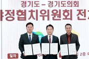 (뉴스폼) 경기도의회 국민의힘은 4일, 도의회 예담채에서 열린 ‘제1차 도의회-도 여야정협치위원회 전체회의’에서 ‘2026년도 본예산 협치예산’ 및 ‘특별조정교부금 제도 개선’에 합의했다고 밝혔다. 이날 행사에는 도의회에서 백현종 국민의힘 대표의원과 김진경 의장, 최종현 더불어민주당 대표의원을 비롯해 양당 총괄수석부대표와 수석정책위원장 및 수석대변인이 참석했다. 경기도에서는 김동연 도지사와 고영인 경제부지사를 포함해 협치수석, 기획조정실장, 균형발전기획실장 등이 자리했다. 이번 전체회의는 지난 8월 출범한 도의회-도 여야정협치위원회 협약식과 현판식에 이은 첫 번째 만남이다. 행사는 경과보고 및 ▲도-도의회 2026년 본예산 협치예산 합의문 ▲도-도의회 특별조정교부금 제도 개선 합의문 내용에 관한 설명이 이어진 후 양당 대표의원과 경제부지사가 합의문에 서명하는 것으로 진행됐다. 도-도의회 2026년 본예산 협치예산 합의문의 골자는 ▲도민 생활 안정과 지역경제 회복 추진 ▲따뜻한 복지 환경 조성 ▲도민 이동권 확대 ▲지속 가능한 성장 기반 마련 ▲재난 및 기후 위기 선제적 대응이다. 특히, 백현종 대표