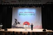 (뉴스폼) 동두천시는 2026년 병오년(丙午年) 새해를 맞아 1월 2일 오후 2시 시민회관 공연장에서 시민과 함께하는 ‘2026년 시무식’을 개최했다. 이번 시무식은 시립이담농악단의 병오년 ‘붉은 말의 해’를 알리는 웅장하고 경쾌한 북소리로 막을 열었다. 이어 전통 농악 장단을 현대적으로 재해석한 타악 퍼포먼스와 시립합창단의 ‘새로운 길’, ‘개선행진곡’, ‘위풍당당 행진곡’ 공연이 이어지며 희망찬 새해의 시작을 알렸다. 박형덕 동두천시장은 '2026년 시민과 함께하는 시무식'에서 ‘동두천을 새롭게! 시민을 힘나게! 시민이 행복한 도시! 매일 활력 넘치는 동두천을 위하여!’라는 구호와 함께 힘찬 타고식을 진행하며 시민의 행복과 도시의 활력을 강조했다. 또한 박 시장은 “민선 8기 4년 차를 맞는 2026년 시정의 핵심 키워드를 ‘일로매진(一路邁進)’으로 삼겠다”라며 “미군 공여지 피해 규모 및 발전계획 연구용역을 통해 정부의 확실한 보상과 지원을 이끌어내고, 평화로 가로환경 정비사업으로 보행 공간을 확장하며, 동두천중앙역세권 일대 도시재생사업을 통해 시민을 위한 문화공간과 기반 시설을 확충하겠다”라고 밝혔다.
