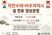 (뉴스폼) 안양시는 2월 14일부터 18일까지 설 명절 연휴 기간에도 ‘착한수레’와 ‘바우처택시’를 정상 운영한다고 11일 밝혔다. 두 교통수단은 대중교통 이용이 어려운 장애인·임산부·영유아 등 교통약자의 병원 진료, 등·하교, 출·퇴근 등 일상 이동을 지원한다. ‘착한수레’는 중증 보행 장애인과 휠체어 이용자 등 거동이 불편한 시민이 이용할 수 있다. 현재 42대를 연중무휴 운영 중이며, 올해 노후 차량 5대를 교체해 운행 안정성을 높일 계획이다. 경기도 교통약자 광역이동지원센터 콜센터와 누리집, 모바일 앱을 통해 24시간 접수 및 이용이 가능하다. ‘바우처택시’는 평상시 일반택시로 운행되다가, 안양시 교통약자콜센터의 배정을 받으면 교통약자 이동을 지원하는 방식의 교통수단이다. ‘착한수레’ 이용 대상에 포함되지 않는 비휠체어 교통약자 등이 이용할 수 있으며, 현재 67대를 운영 중이다. 안양시 교통약자이동지원센터 콜센터를 통해 오전 7시부터 오후 6시까지 이용할 수 있고, 일요일은 운영하지 않는다. 시 관계자는 “설 명절에도 교통약자들이 이동에 불편함 없이 가족과 따뜻한 시간을 보낼