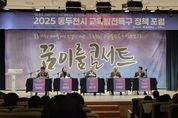 (뉴스폼) 동두천시는 지난 18일 동두천시 평생학습관에서 열린 ‘동두천시 교육발전특구 성과보고회 '꿈이룸 콘서트'’가 총 500여 명의 시민이 참석한 가운데 성황리에 마무리됐다고 밝혔다. 이번 행사는 동두천시가 2024년 2월 교육발전특구 시범지역으로 선정된 이후, 지역 대학과 학교, 교육지원청 등 유관기관과 함께 추진해 온 교육 혁신 성과를 시민들과 공유하고, 지역 교육의 지속적인 발전을 도모하기 위해 마련됐다. 행사에서는 ▲교육발전특구 정책포럼 ▲미미미누 특별강연 ▲홍비치라 그림작가 토크쇼 및 사인회 등 다양한 프로그램이 진행됐으며, 교육과 예술을 결합한 구성으로 청소년부터 성인까지 전 세대가 함께 참여할 수 있어 관람객들의 큰 호응을 얻었다. 또한 평생학습관 1층 로비에는 ▲캐리커처로 나만의 머그컵 만들기 ▲자율주행 로봇 시연 ▲학생 작품 전시회 등 체험형 이벤트 공간이 운영됐으며, 2년간 학생들이 수업을 통해 제작한 작품 전시와 그 과정을 담은 뮤직비디오는 학교와 학생, 학부모들로부터 큰 관심을 받았다. 특히 ‘제1회 교육발전특구 SW·AI 경진대회’ 시상식에서는 휴머노이드 로봇이 직접 상장