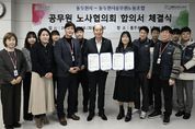 (뉴스폼) 동두천시와 공공연대노동조합 동두천지부는 지난 16일 동두천시청 1층 소회의실에서 2025년 공무직 노조 단체협약 체결식을 개최했다고 밝혔다. 이번 단체협약은 2023년 12월 노동조합 측의 단체협약 갱신 교섭 요구를 시작으로, 약 2년간 총 21회의 본교섭과 2회의 조정회의, 심판회의를 거쳐 최종 합의에 이르렀다. 공무직 노조의 단체협약 갱신을 위한 18개 요구 사항 가운데 주요 합의 내용은 ▲환경미화원 4명 채용 ▲장기재직휴가 확대 ▲병가 사용 조건 완화 ▲자녀 입영휴가 신설 등 총 6개 안건이다. 박형덕 동두천시장은 “이번 단체협약을 통해 공무직 근로자의 근무여건이 개선되어 더 안정적인 근무 환경에서 시정 발전에 기여할 수 있는 계기가 마련된 것 같다”며, “앞으로도 노사간 상호 신뢰와 협조를 바탕으로 함께 성장하는 근무환경을 조성해 나가겠다”라고 밝혔다. 박성수 지부장은 “단체협약에 합의한 안건들이 공무직 근로자의 사기 진작과 업무 능률을 높이는데 도움이 될 것이라고 생각하며, 앞으로도 노사간 소통과 협력을 통해 공무직 근로자의 복지와 권익을 위해 힘쓰도록 노력하겠다.”라고 말했다.