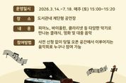 (뉴스폼) 양주시 옥정호수도서관이 오는 3월 14일부터 7월 18일까지 시민들이 일상 속에서 음악을 즐길 수 있도록 ‘토요 짬 연주회’를 진행한다. ‘토요 짬 연주회’는 2023년부터 이어져 온 옥정호수도서관의 대표 문화 프로그램이다. 주말 도서관을 찾은 시민들이 독서 중 잠시 여유를 갖고 음악을 감상할 수 있도록 기획됐으며, 별도의 사전 신청이나 예약 없이 누구나 자유롭게 관람할 수 있다. 공연은 매주 토요일 오후 3시부터 약 30분간 도서관 내 개방형 공간인 계단형 공연장에서 열린다. 피아노, 첼로, 클라리넷 등 다양한 악기 편성으로 정통 클래식부터 대중음악까지 폭넓은 레퍼토리를 선보이며, 연주자와 관객이 가까운 거리에서 호흡하는 생동감 있는 공연이 펼쳐질 예정이다. 도서관 관계자는 “2023년부터 시민들의 큰 사랑을 받아온 연주회가 올해도 시민들에게 일상 속 기분 좋은 쉼표가 되길 바란다”며 “앞으로도 옥정호수의 아름다운 풍경과 어우러지는 수준 높은 문화 콘텐츠를 지속적으로 제공해 지역 문화 거점으로서의 역할을 다하겠다”고 말했다.