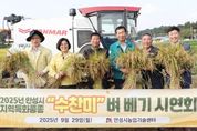 (뉴스폼) 안성시농업기술센터는 9월 29일, 안성시 지역특화 벼 품종인 ‘수찬미’의 벼 베기 행사를 성황리에 개최했다. 이번 행사는 2025년부터 본격 보급된 ‘수찬미’를 널리 알리고, 기존 외래품종 ‘추청’을 대체할 대안으로 홍보하기 위해 마련됐다. 이번 행사에는 김보라 안성시장을 비롯해 안성시 및 경기도농업기술원 관계 공무원, 농협중앙회 안성시지부장, 지역농협 조합장 및 안성마춤농협 관계관, 안성시 농촌지도자 및 쌀연구회 회원, 벼 재배 농업인 등이 참석했다. 이날 김보라 시장은 직접 콤바인에 탑승해 수확 시연에 참여하며 농업인들의 노고를 격려하고 수확의 기쁨을 함께 나눴다. ‘수찬미’는 경기도농업기술원이 개발한 중생종 중간찰 벼로, 보람찰과 밀키퀸을 교배해 만들어졌다. 밥맛과 식감이 뛰어나고 수발아율이 낮아 기후변화에 대한 적응력도 높다. 특히 지난 55년간 안성지역 대표 품종으로 널리 재배되고 있는 추청벼가 2027년부터 보급종 공급이 중단될 예정이어서, ‘수찬미’가 안성시의 대체 품종으로 주목받고 있다. 김보라 시장은 “수찬미는 올해부터 500ha로 본격 도입되어 내년에는 재배면적을 1,700ha까지