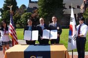 (뉴스폼) 평택시의회는 22일, 미국 애니 라이트 스쿨에서 열린 협약식에 참석해 양해각서(MOU)를 체결하며, 평택국제학교 설립을 공식화했다. 이날 협약식에는 강정구 평택시의회 의장, 정장선 평택시장, 애니 라이트 스쿨 데이비드 오버튼 이사장, 제이크 과드놀라 교장을 비롯한 학교 관계자, 학부모, 학생, 지역 인사들이 함께했다. 협약식에 이어 열린 리셉션에는 메를린 스트릭랜드 연방 하원의원, 데니 헥 워싱턴주 부주지사, 라이언 멜로 피어스 카운티 행정수반 등 지역 주요 인사들이 참석해 지역 협력을 논의했다. 강정구 의장은 “오늘 양해각서(MOU) 체결을 계기로 평택국제학교 설립에 필요한 실무적 협의를 완료하고 교육환경 선진사례를 직접 확인함으로써 평택시의 글로벌 교육환경이 조속히 조성되기를 바란다”라고 하며 “시민들에게 실질적인 혜택이 돌아가도록 꼼꼼히 점검하고 정책에 반영하겠다”고 밝혔다.