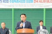 (뉴스폼) 수원특례시의회는 9월 24일 만석공원 테니스장에서 열린 ‘제3회 수원특례시의회 의장배 시니어 테니스대회 개회식’ 참석했다. 이번 대회는 테니스를 사랑하는 시니어 동호인들이 한자리에 모여 기량을 겨루고 화합하는 자리로 마련됐다. 개회식에는 이재식 의장을 비롯해 오세철 예산결산특별위원장, 김동은 의원, 이재선 의원, 현경환 의원, 수원시 체육회 관계자 등이 함께해 선수들을 격려했다. 이재식 의장은 축사에서 “오늘은 테니스를 사랑하는 분들이 모두 모인 뜻깊은 날”이라며 “양일간의 대회가 부상 없이 안전하게 마무리되길 바라며, 여러분 모두의 승승장구를 힘껏 응원하겠다”고 말했다. 이어 “수원특례시의회는 시민들께서 생활체육을 통해 활기차고 건강한 일상을 누리실 수 있도록 적극 지원하겠다”고 덧붙였다.