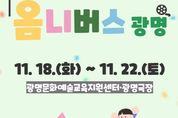 (뉴스폼) (재)광명문화재단은 오는 11월 18일부터 22일까지 광명문화예술교육지원센터·광명극장에서 2025 문화예술교육주간‘옴니버스 광명’을 개최한다. ‘옴니버스(Omnibus)’는 라틴어로 ‘모두를 위한’을 뜻하며, 여러 독립된 이야기를 하나의 주제로 엮는 형식을 의미한다. 이번 주간은 이러한 옴니버스 형식으로 다양한 문화예술교육 프로그램이 하나의 메시지 아래 연결되도록 기획됐다. 이번 행사는 ‘모두를 위한 문화예술교육’을 주제로 ▲대담회 '거장들의 대화: 청소년을 위한 특별한 예술 수업' ▲접근성 체험 프로그램 '경계 없는 교실(Beyond Limits)' ▲경기 지역중심 문화예술교육 지원사업 성과 공유회 '끝과 시작' ▲생활악기오케스트라 제7회 정기연주회 'Fuoco(불꽃)'까지 총 네 개의 프로그램을 통해 누구나 참여할 수 있는 포용적 문화예술교육주간을 구현하고자 한다. 18일 19시에 광명극장에서 2025년 문화예술교육주간 첫 시작으로 지난 9월 진행된 ‘페르테 예술학교’와 연계된 '거장들의 대화: 청소년을 위한 특별한 예술 수업'대담회가 열린다. 고희경 교수(홍익대 공연예술대학원장), 김학민 교수(