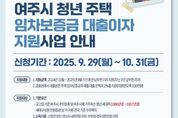 (뉴스폼) 여주시는 지난 9월 29일부터 오는 10월 31일(금)까지 ‘2025년 청년 주택 임차보증금 대출이자 지원사업’ 신청자를 모집한다고 밝혔다. 지원 자격은 공고일 기준 여주시에 주민등록을 두고 거주하는 청년 세대주(18세~39세)이며, 연 소득이 4천만원 이하, 무주택자여야 한다. 단, 기초생활보장수급자나 공공임대주택 거주 등은 제외된다. 지원금액은 금융권에서 대출받은 임차보증금에 대해서 대출 잔액의 연2%를 연간 최대 100만원까지 지원하며, 신청방법은 복지행정과로 등기우편 접수 또는 직접 방문하면 된다. 시 관계자는 “관련 사업으로 여주시 청년의 주거비 부담 완화를 기대하며, 청년층의 생활 안정과 정주여건 개선을 위해 추진됐다.” 라고 전했다.