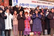 (뉴스폼) 이재준 수원특례시장은 1일 아침 팔달산 서장대에서 시민들과 함께 해맞이를 하고, “시민 여러분께서 소망하시는 모든 것을 성취하시길 기원하겠다”고 말했다. 이재준 시장은 “올해도 시민 여러분과 함께 수원을 더 새롭고, 더 빛나게 만들기 위해 노력하겠다”며 “모든 시민이 수많은 역사와 희망을 만드는 멋진 한 해가 되길 바란다”고 기원했다. 서장대 일원을 가득 메운 시민들은 떠오르는 해를 보며 함께 소원을 빌었다. 수원시는 12월 31일 저녁부터 1월 1일 아침까지 일원에서 시민들과 함께하는 송년·신년 행사를 열었다. 12월 31일 밤 10시 30분부터 행궁광장 특설무대에서 ‘제야음악회’가 열렸다. 자정에는 여민각에서 제야 타종 행사를 열고 2026년 병오년(丙午年)의 시작을 알렸다. 이재준 시장, 이재식 수원특례시의회 의장, 김영진(수원시병)·김준혁(수원시정) 의원, 시민 대표 등이 타종했다. 이재준 수원시장과 김현수 제1부시장, 4개 구청장, 실·국장 등은 1일 오전 9시 현충탑을 참배했다.