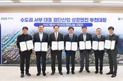 (뉴스폼) 부천시는 15일 오정구청 대회의실에서 대한항공, SK이노베이션, SK하이닉스, DN솔루션즈 등 4개 기업과 ‘부천대장 R&D 클러스터 비전 파트너쉽 간담회’를 갖고, ‘부천대장 도시첨단산업단지 입주 계약’을 체결했다. 이날 4개 기업은 한국주택토지공사(LH)와 4천1백억 원 규모 토지매매계약도 함께 완료했다. 이번 계약은 3기 신도시 내 산업단지에 기업이 입주하는 첫 사례이자 입주계약과 토지매매계약을 한 자리에서 동시에 마무리한 이례적인 사례로, 절차의 효율성과 투명성을 높였다는 평가다. 이번 계약으로 산업시설용지의 36%(약 13만㎡, 약 3만 9천 평)가 조기 입주 확정됐으며, 총투자 규모는 약 2조 6천억 원이다. DN솔루션즈가 2029년 3월 가장 먼저 준공과 입주를 앞두고 있으며, SK이노베이션과 SK하이닉스는 2030년 말, 대한항공은 2031년 말 입주를 계획하고 있다. 입주가 완료되면 3천7백여 명의 석·박사급 연구 인력이 상주하게 된다. 이번 행사에는 김동연 경기도지사, 조용익 부천시장, 서영석 국회의원(부천시갑)을 비롯해 우기홍 대한항공 부회장, 김필석 SK이노베이션 최고기술책임자(CTO), 박호현 SK하이닉스 부사장, 김