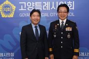 (뉴스폼) 고양특례시의회 김운남 의장은 9일, 강기택 일산서부경찰서장과 면담을 갖고 대화동 킨텍스 지원부지 인근 원형육교 주변 보행환경 개선 방안에 대해 의견을 나눴다. 이날 면담에서는 원형육교 인근 보행 동선과 관련해 주민 불편이 제기되고 있는 상황을 공유하고, 교통 안전과 보행 편의성을 함께 고려한 개선 방안에 대해 논의가 이뤄졌다. 특히 킨텍스 일대 주거 인구 증가와 GTX 킨텍스역 개통 이후 증가한 보행 수요를 반영해, 시민 보행 안전을 높일 수 있는 현실적인 개선 방안을 중심으로 논의가 이어졌다. 원형육교는 지난 2005년 녹지축 연결을 목적으로 설치돼 공원 간 보행 기능을 수행해 왔으나, 최근 킨텍스 지구 개발과 대규모 공동주택 단지 조성 등으로 주변 환경이 변화하면서 보행 동선과의 적합성에 대한 다양한 의견이 제기되고 있다. 김운남 의장은 “도시 환경과 교통 여건이 변화하는 만큼, 시민의 보행 안전과 이동 편의성을 종합적으로 고려한 검토가 필요하다”며 “관계기관과의 지속적인 소통을 통해 주민 불편을 최소화할 수 있는 방안을 함께 모색해 나가겠다”고 말했다. 강기택 일산서부경찰서장은 “교